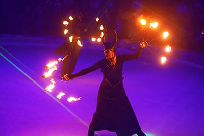 Auf echtem Eis erleben Sie ein faszinierendes Märchen, in dem alle Bewohner des vereinigten Eisreichs – Elfen, Hobbits, Waldfeen, Faunen, Avatare und Menschen – gemeinsam gegen den Einfluss des Generators des Bösen auf die gute Königin des Zauberwaldes Maleficent kämpfen.
