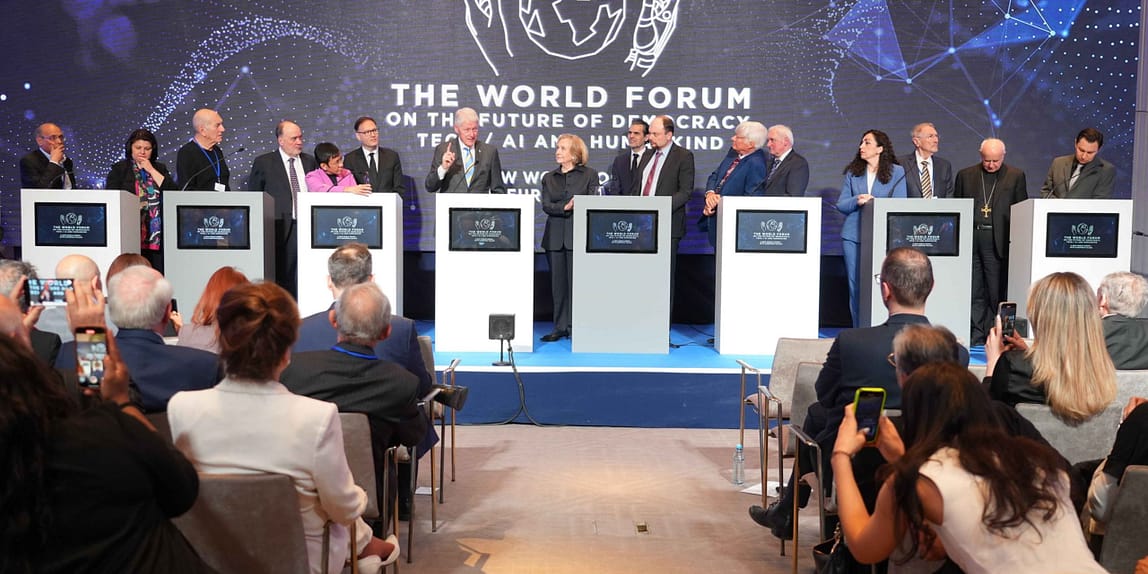 Berlin – Das Weltforum zur Zukunft der Demokratie, der künstlichen Intelligenz/Technologie und der Menschheit beginnt am 18. und 19. März mit Beiträgen von Papst Franziskus, US-Präsident Bill Clinton, Außenministerin Hillary Clinton, dem taiwanesischen Präsidenten Lai Ching-te, den Staatsoberhäuptern des Kosovo, Israels, Palästinas, Irlands, Nordirlands, Rumäniens, der Republik Moldau und Litauens, den Friedensnobelpreisträgern Maria Ressa und Oleksandra Mathviichuk, dem Co-Pate der künstlichen Intelligenz Yoshua Bengio, dem „Präsidenten Russlands im Exil“ Vladimir Kara-Murza, dem Hohen Repräsentanten für Bosnien Christian Schmidt und dem Gründer des Weltforums und Kinos für den Frieden Jaka Bizilj.