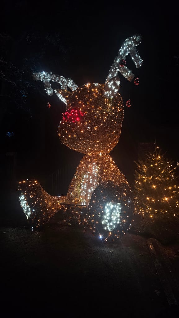 Das Lichterfest „Weihnachten im Tierpark“ ist in Berlin-Lichtenberg eröffnet worden. Bereits zum sechsten Mal werden Teile des Tierparks in der Vorweihnachtszeit in eine leuchtende Winter- und Lichterwelt verwandelt. Entlang eines zwei Kilometer langen Rundwegs sind bis zum 10. Januar über 30 inszenierte Lichtinstallationen und interaktive Attraktionen aufgebaut.