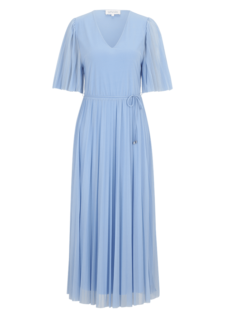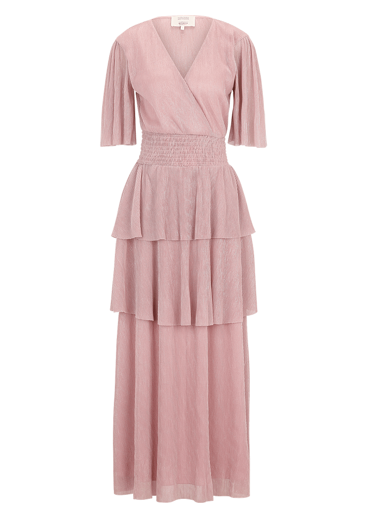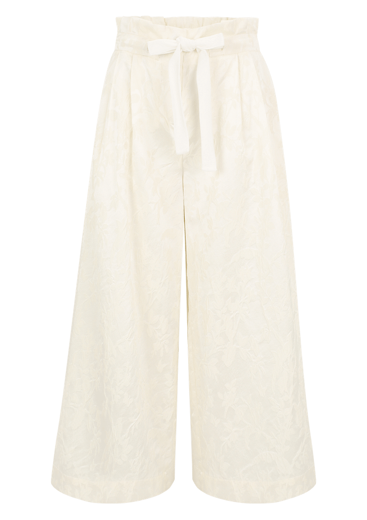 Die Designs sind inspiriert von der eleganten Silhouettenwelt der Regency-Ära und interpretieren diese neu. Luxuriöse Materialien wie Lurex mit metallischem Schimmer, zarte Spitze und hochwertige Wollanteile verleihen den Looks eine edle Anmutung. Fließende Stoffe wie Chiffon prägen Blusen, Röcke und Kleider, während Jacquard-Hosen und raffinierte Schnitte für zeitgemäße Eleganz sorgen. Liebevolle Details – von Rüschen, Tüll und Perlenverzierungen über funkelnde Pailletten, glänzende Knöpfe und Strassverzierungen bis hin zu kunstvollen Plissee-Falten und verspielten floralen Prints – machen jedes Piece zu einem besonderen Highlight.