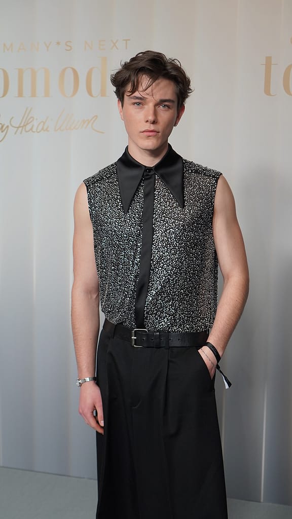 Nino (22, Lupburg) erscheint auf Krücken. Knorpelschaden und gerissene Bänder halten ihn nicht davon ab, sich dem Laufsteg zu stellen. Sein Auftritt beweist: Ein Model muss nicht makellos sein, sondern vor allem entschlossen.