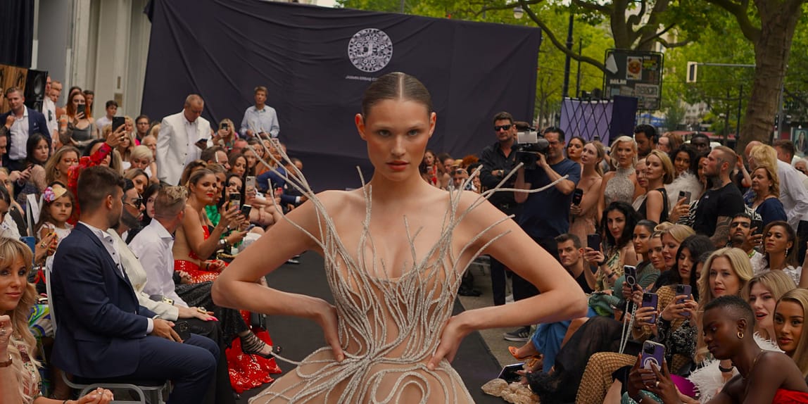 Tüllkleider, Perlen, Glanz mit ganz viel Strass und Transparenz und hervorstechende Gelbe Blumenkleider erwarten uns 2024 von der Jasmin Erbas Fashion Couture Show 2023.